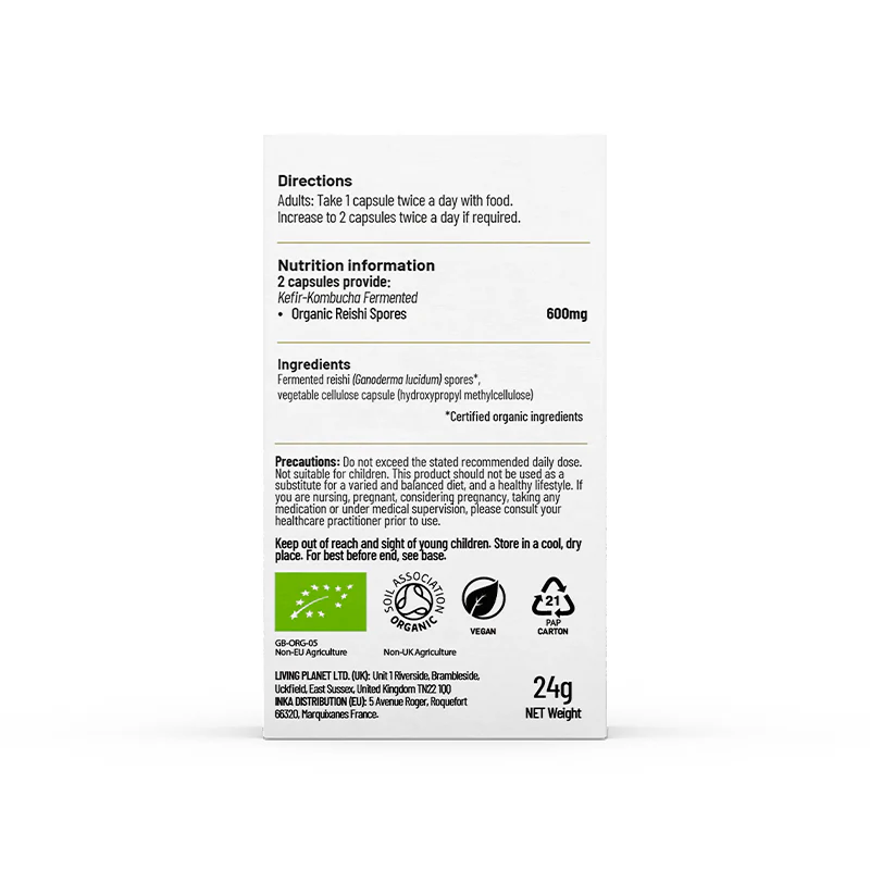 • 600mg fermented reishi spores per serving